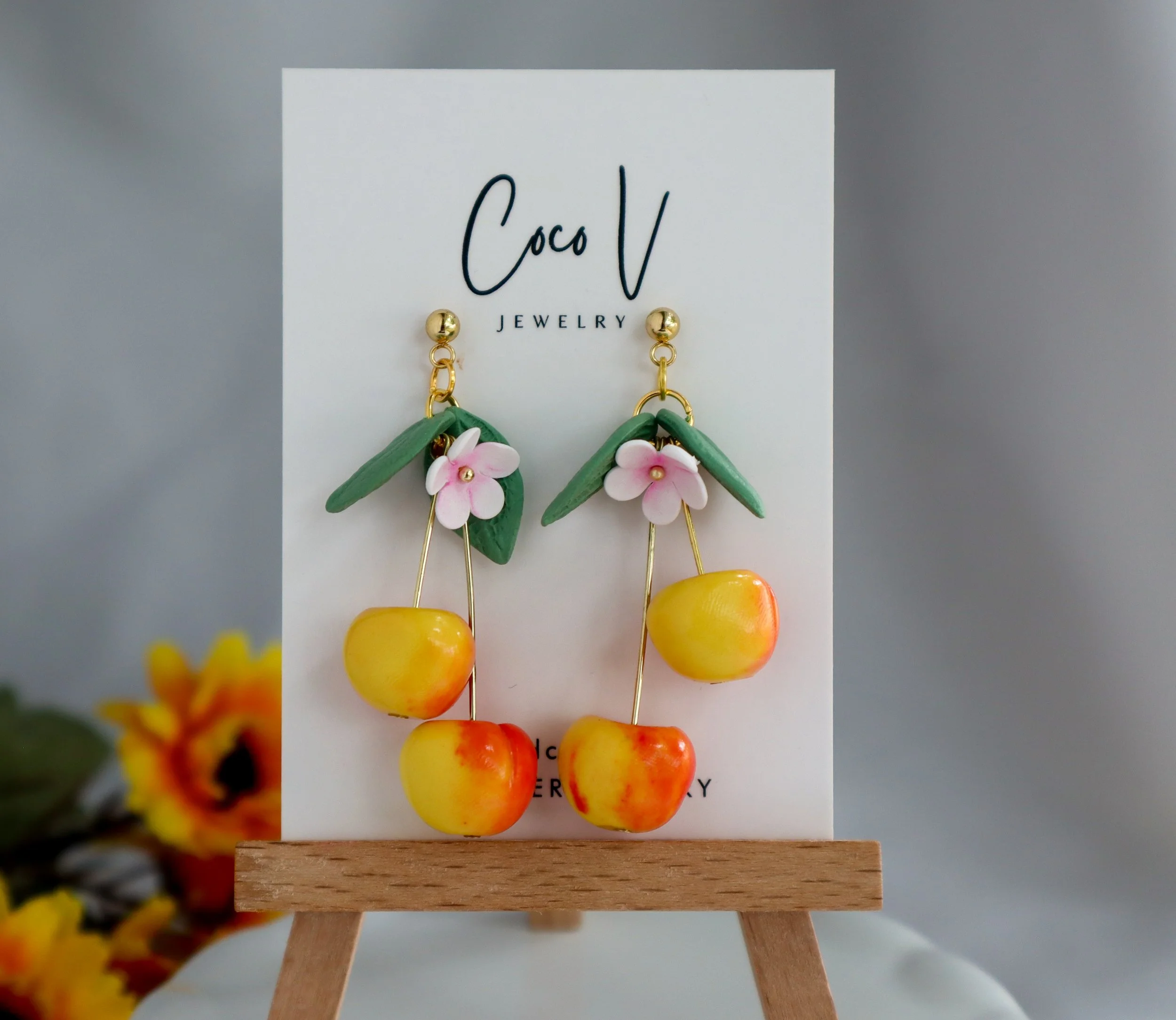 Discover the vibrant charm of our Rainier Cherries earrings, expertly handcrafted from polymer clay. Featuring a perfect blend of bright red and golden yellow hues, these earrings capture the unique beauty of Rainier cherries in a playful and stylish accessory. Lightweight and comfortable, they add a fresh, fruity pop to any outfit—ideal for casual days or a touch of whimsy at special events. Elevate your look with this exclusive piece from our collection, and enjoy fast shipping and a delightful unboxing experience.